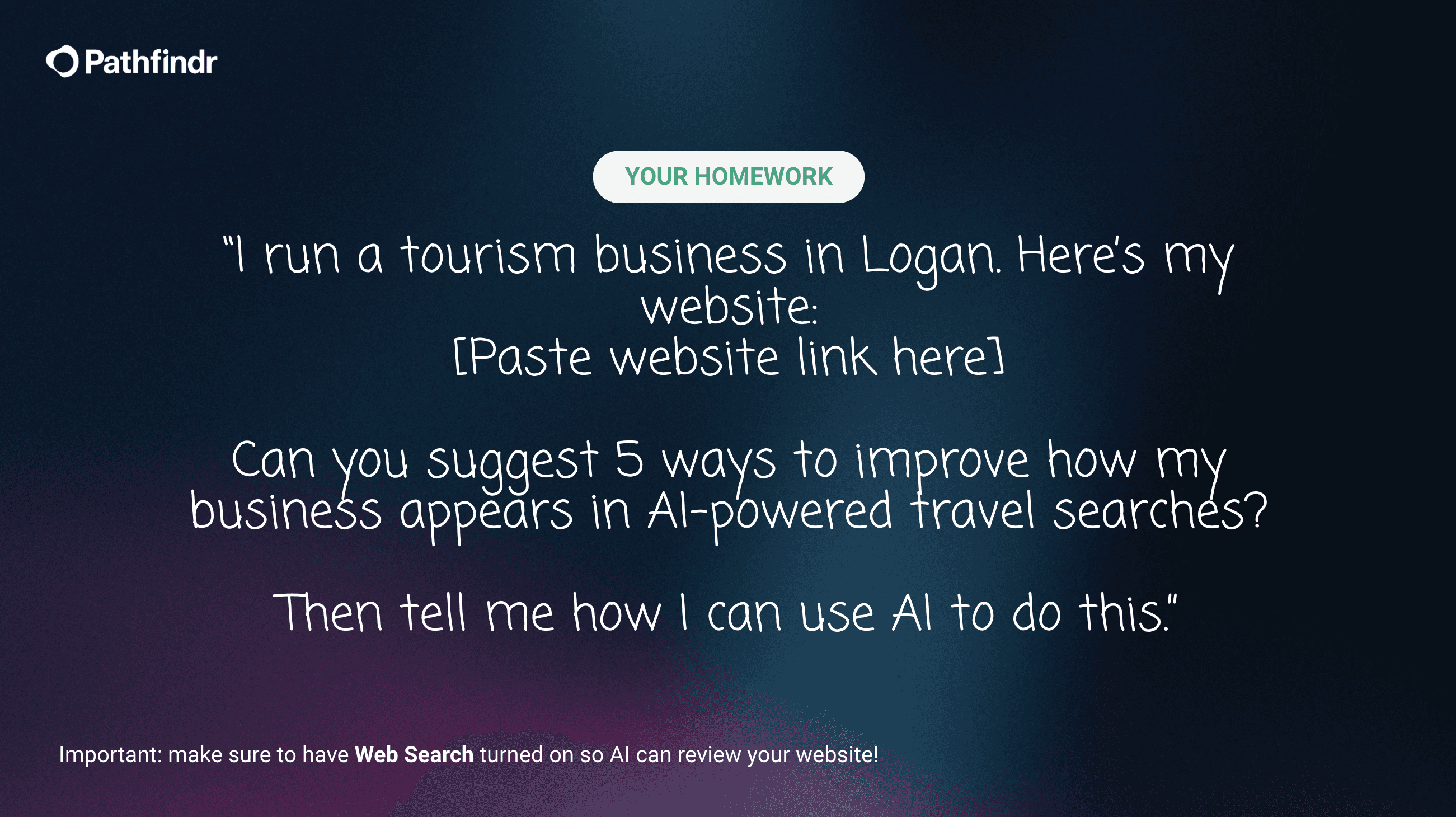 Tomorrow, I'm presenting to the Logan Tourism Body about AI and marketing. At the end, I'm giving them homework—a simple prompt to paste into ChatGPT: