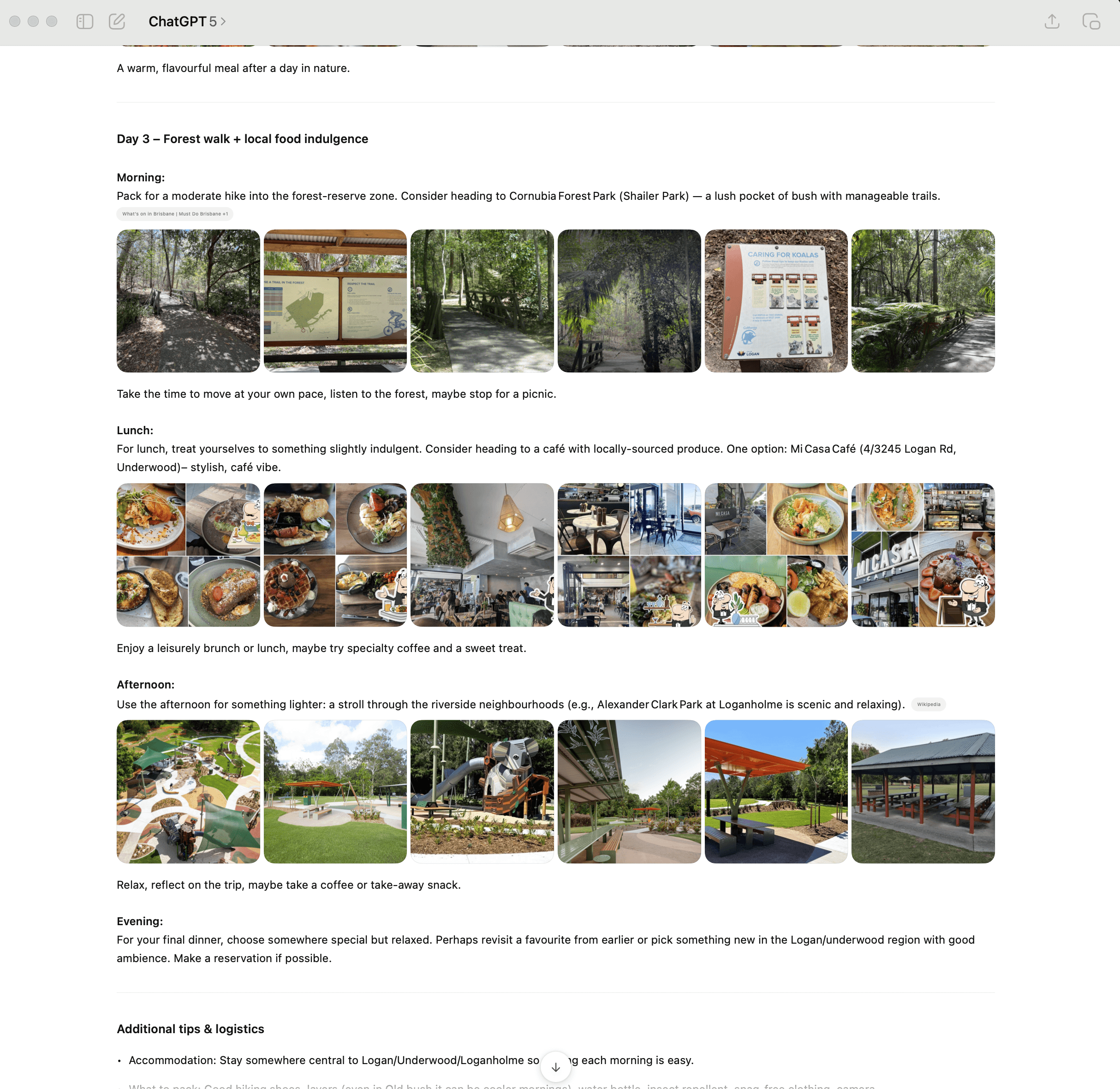 Notice how it's making recommendations based on my personal preferences (hiking and local foods)? This is where AI is better than any travel guide out there - it's job is to find the best place for you.