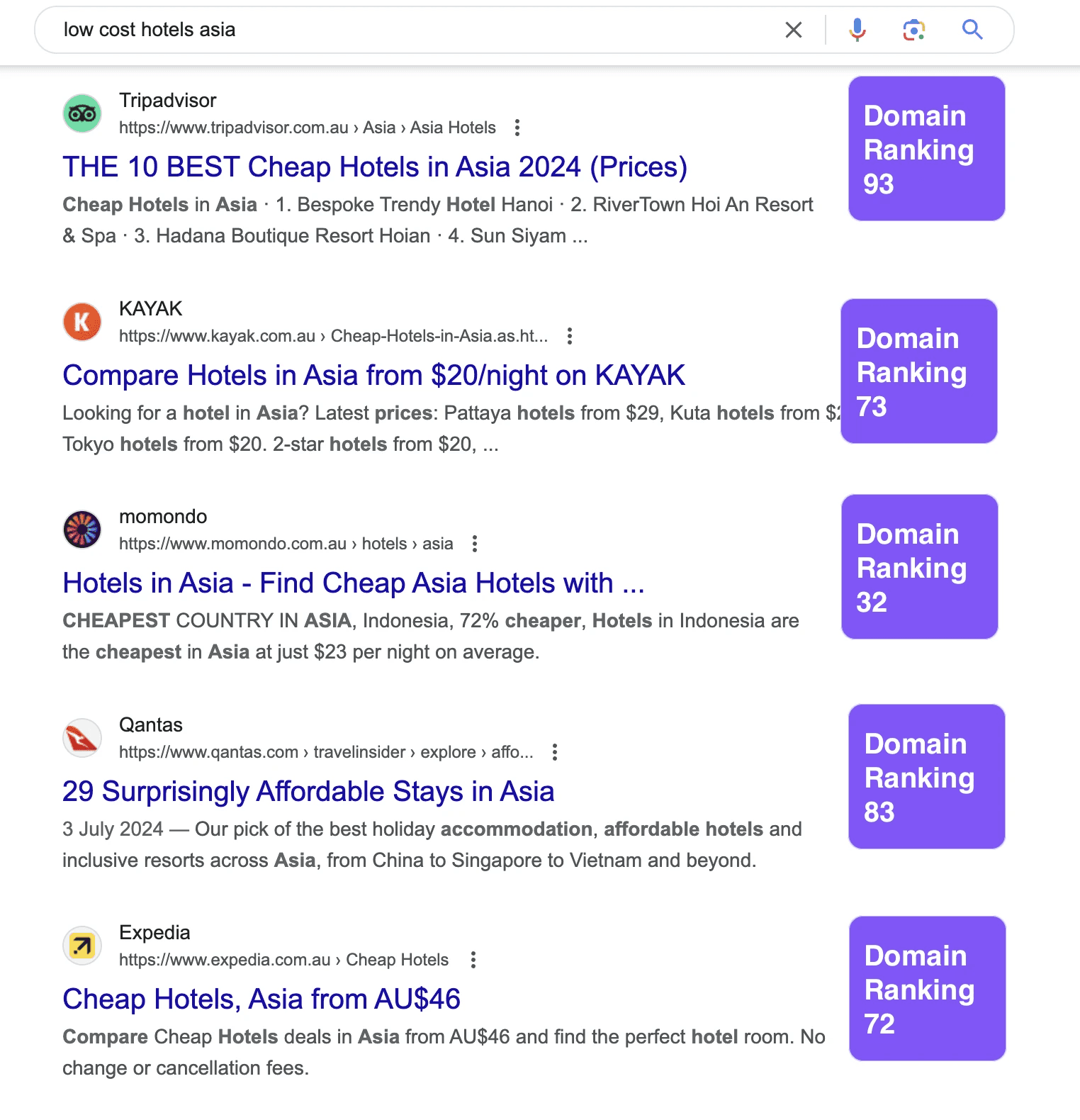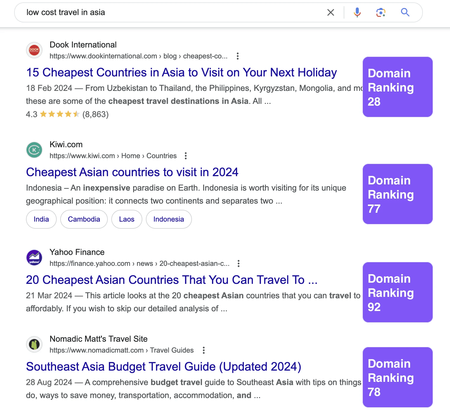 SEO: The traditional SEO experience requires me to access and read multiple websites to find information about how I can travel Asia cheaply, and subsequently make decisions.