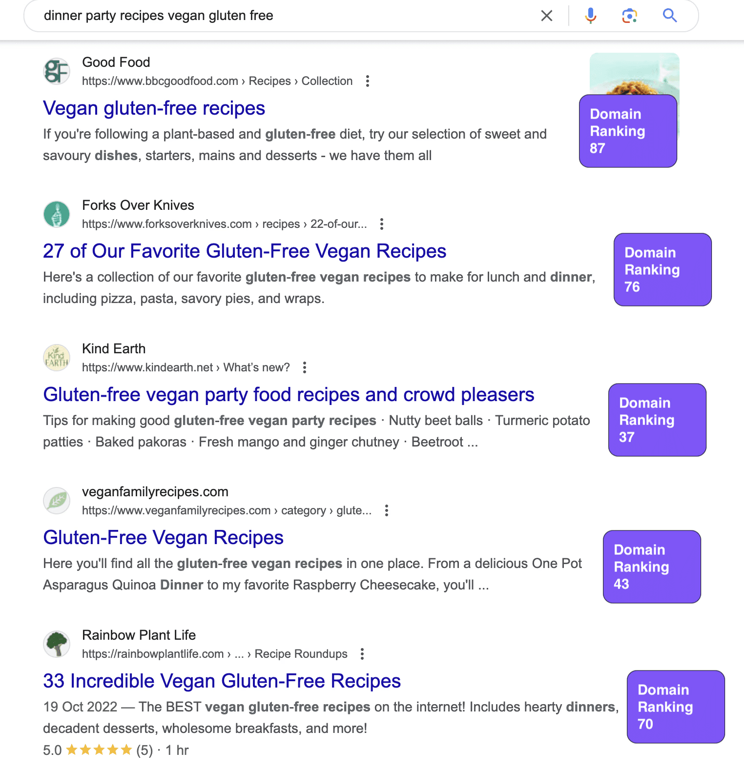 SEO: I am presented with results from websites with high domain rankings that are optimised for search engine visibility.